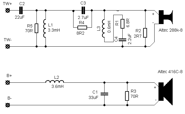 Altec 416C pokriva bas i dio srednjetonskog područja, a za ostatak tonskog spektra zadužen je, također Altecov, kompresijski zvučnik 288k u kombinaciji sa «lecleach» trubom. Altec 288k je prema svim parametrima impresivna zvučnička jedinica. S magnetom promjera 20cm i masom od 13kg to je jedan od najvećih visokotonaca na svijetu. Velika aluminijska membrana promjera 80mm omogućava mu linearan rad gotovo do gornjeg bas područja, pa je u nekim profesionalnim aplikacijama bio rezan i na 300Hz. Ipak, njegovo optimalno područje rada počinje negdje oko 500Hz. U ALMM-u je susretna frekvencija sa bas/srednjetoncem 800Hz. Uz ekvalizaciju u skretnici linearan je sve do 16kHz gdje odziv počinje padati.